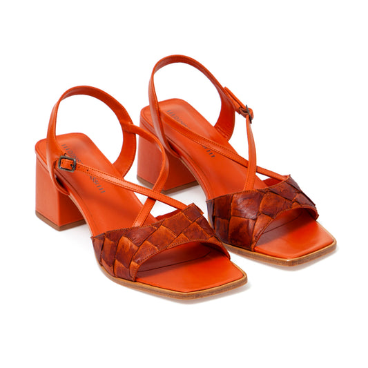 BARTIRA - Sandália em couro de pirarucu com salto 6 cm Telha - Telha
