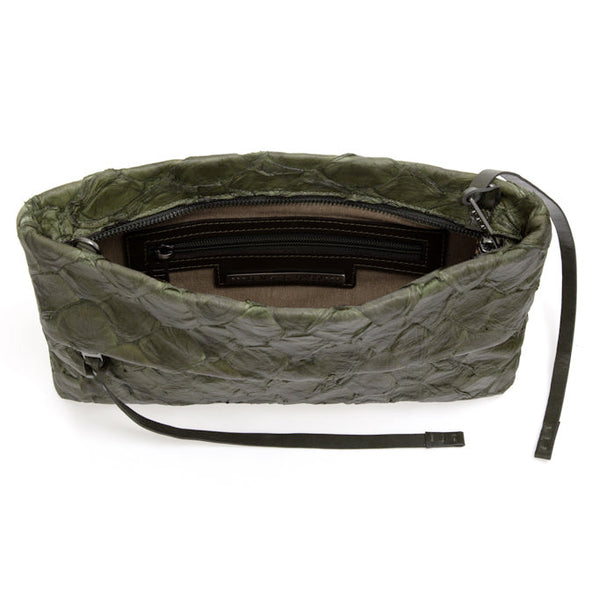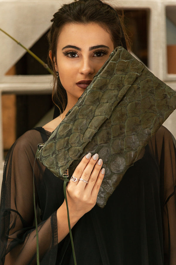 Assim é a bolsa Maxi Clutch Aquira, toda em couro de pirarucu. Ela te acompanha em casamentos ou festas, mas também em muitas outras ocasiões mais descontraídas. E por isso mesmo, é uma das bolsas de mão mais desejadas da nossa coleção.