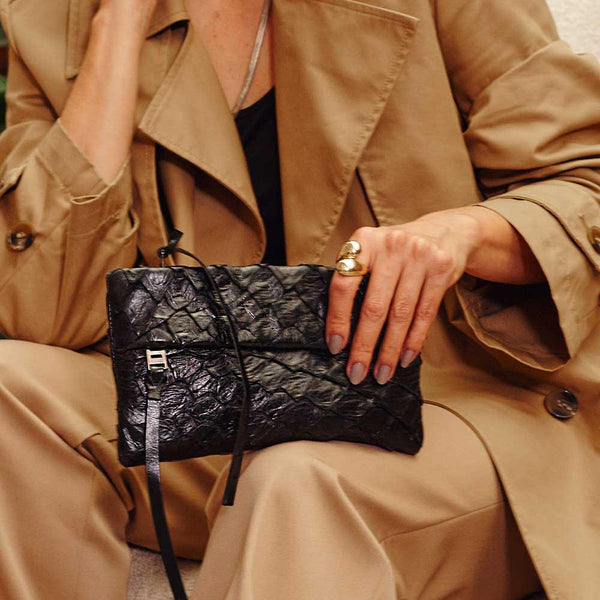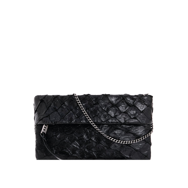 Aquira Mini - Mini Clutch em couro de pirarucu - Preto