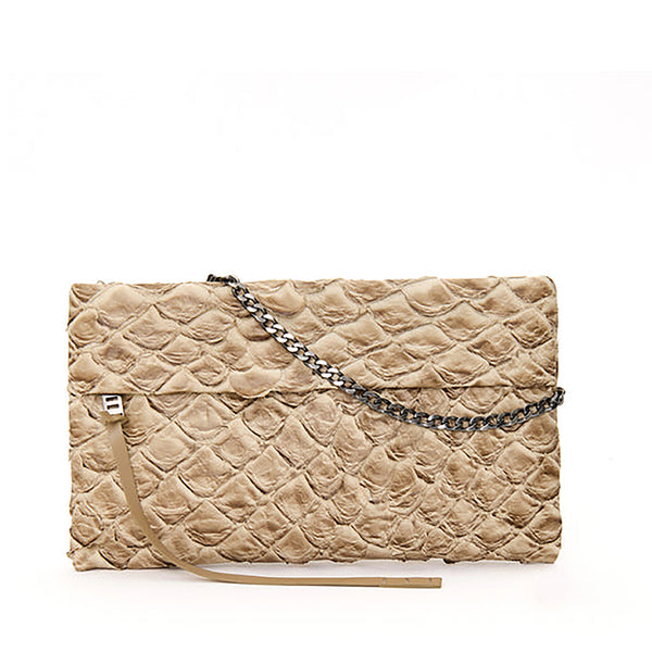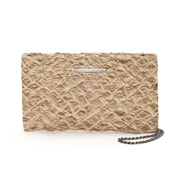 A Bolsa Aquira Maxi Clutch Cappuccino é a expressão máxima do luxo discreto e da elegância atemporal. Com sua cor Cappuccino, inspirada nos clássicos tons de nudes, essa peça é uma joia exclusiva para mulheres que valorizam o poder de um acessório sofisticado. Confeccionada em couro de pirarucu, cada detalhe da Aquira exala sofisticação, sendo ideal para eventos de gala, festas ou momentos que pedem um toque de glamour e distinção.
