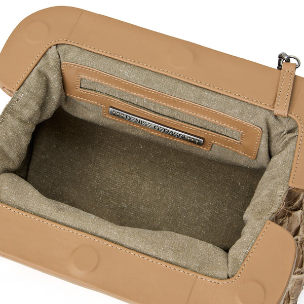 Seus tons neutros e suaves combinam perfeitamente com os seus melhores looks de festa. A Clutch Inara é o acessório perfeito para quem aprecia clutches imponentes e com aquele toque de brasilidade que só o pirarucu traz.