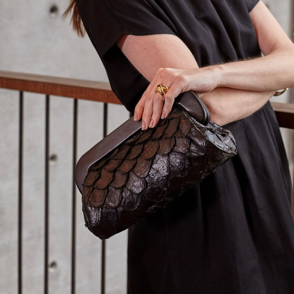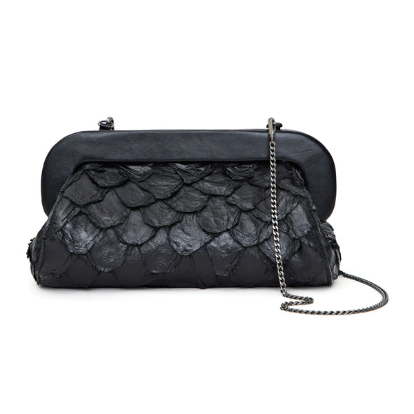Inara - Bolsa Clutch em Couro de Pirarucu Preto