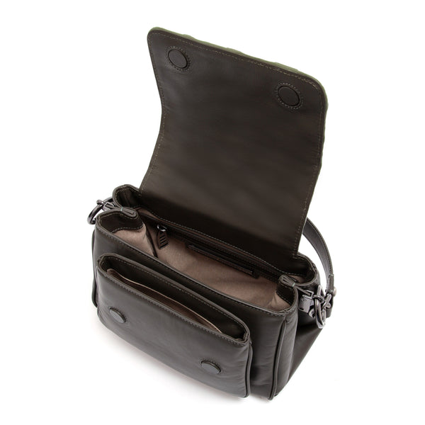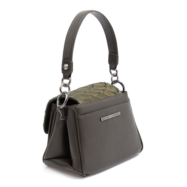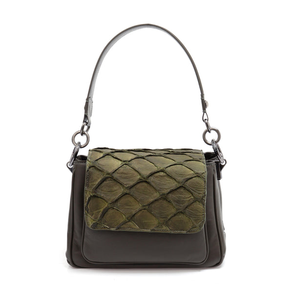 A handbag Moara, era a bolsa que faltava em sua coleção! A tampa frontal em couro de pirarucu, confere a sofisticação dessa peça. Seu amplo espaço interno com dois compartimentos, permite acomodar e organizar todos os seus itens. Possui bolso externo na parte posterior para o celular. Seu design é especial e elegante por todos os ângulos que você olhar. Tem duas alças, uma curta e outra longa para transversal, que podem ser usadas juntas ou separadamente. Fechamento com botões imã e metais em banho onix. DG325/03 - Dimensões: A 20 cm X L 24 cm P 16 cm Peso: 800g Cor: Verde Militar |