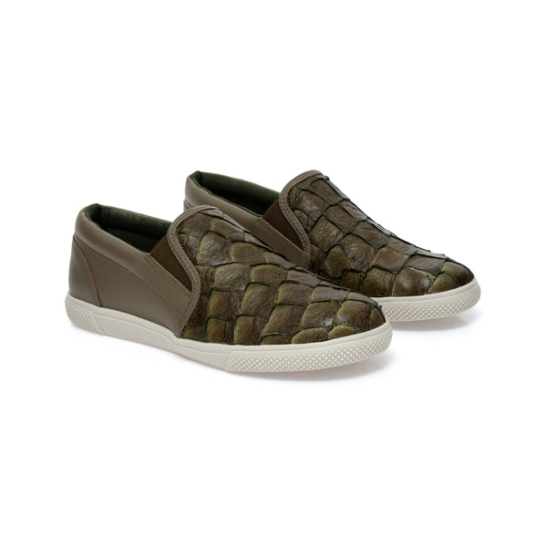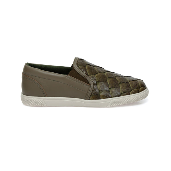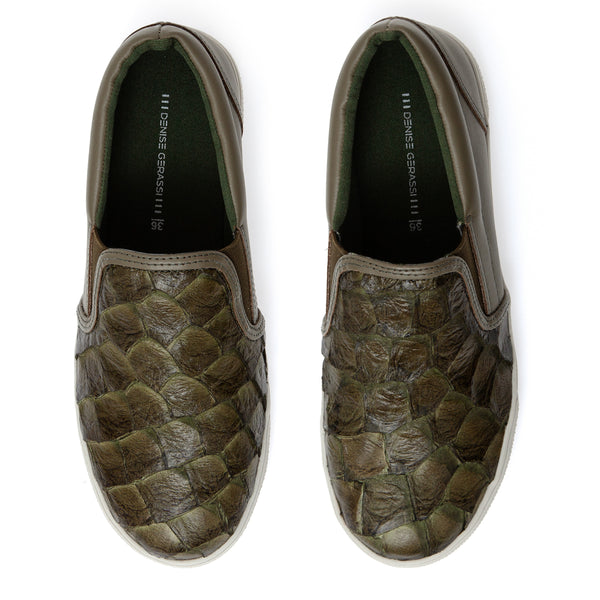 NADI - Tênis Feminino com Frente em Couro de Pirarucu Verde Militar