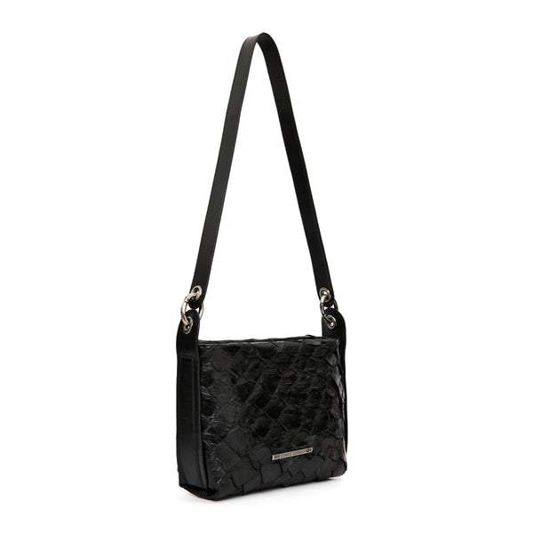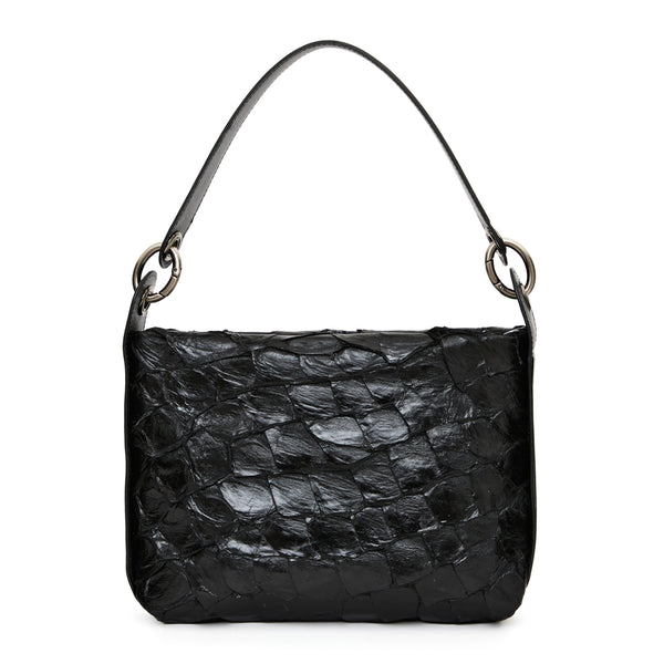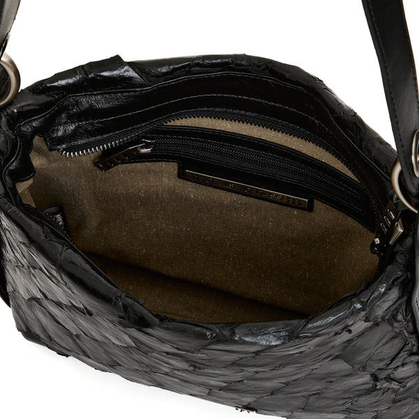 Confeccionada em couro de pirarucu, nosso mais brasileiro e nobre dos materiais, ela une elegância, praticidade e a sofisticação inerente aos produtos Denise Gerassi. Seu design não apenas atrai os olhares, mas também traz informação de moda a qualquer look: seja para ocasiões específicas ou para te acompanhar durante todo o dia. A textura única do couro de pirarucu, com toque e brilho distintos, garante que cada peça seja singular - uma das belezas da natureza.Por dentro ela é super funcional: com um espaço cuidadosamente projetado que acomoda seus pertences com praticidade. Os detalhes em couro bovino e os acabamentos metálicos complementam o design num mix de texturas único.
