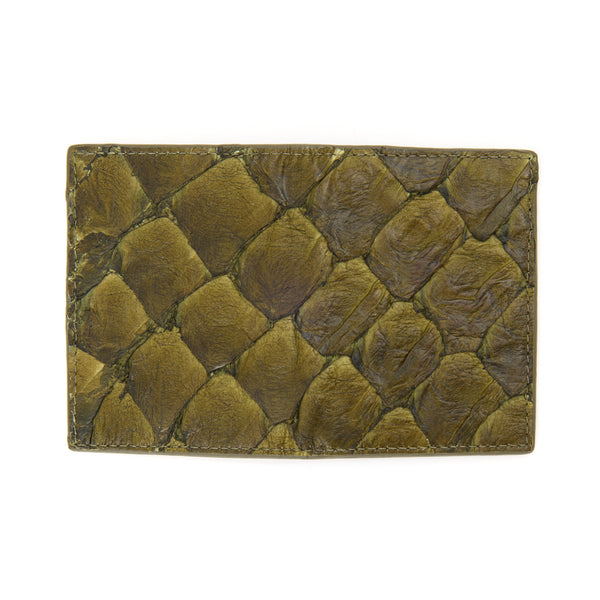 Porta Cartões em Couro de Pirarucu Verde Militar