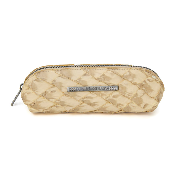 Um porta lápis/maquiagem belíssimo, minimalista e essencial, feito com nosso incrível couro de pirarucu, o que eleva totalmente a elegância deste acessório.