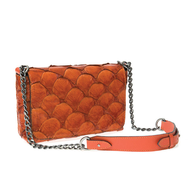 bolsa em couro de pirarucu na cor laranja - Denise Gerassi